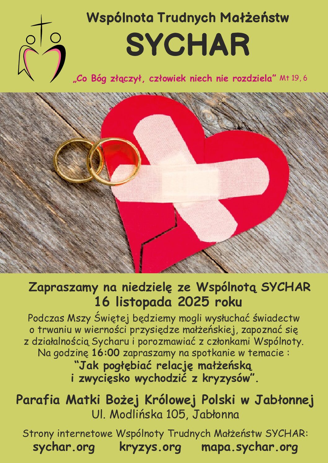 W Jabłonnie odbędzie się ,,Niedziela z Sycharem” – za tydzień 16 listopada w parafii Matki Bożej Królowej Polski. Szczególnie zapraszamy…